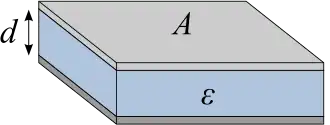 Die Konstante ist die Permittivität (dielektrische Leitfähigkeit) des blau dargestellten Dielektrikums. Dabei ist die elektrische Feldkonstante und die Permittivitätszahl, eine stoffabhängige Größe ( im Vakuum).