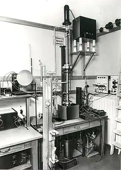 Das 1949 von Ernst Ruska bei Siemens gebaute Übermikroskop ÜM100 im Foyer des Ernst-Ruska-Gebäudes der Technischen Universität Berlin