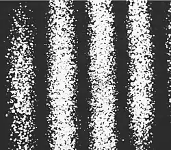 Durch diese Bildkorrelation entsteht ein Streifenmuster, welches ähnliche Eigenschaften aufweist wie ein holografisches Interferogramm. Die Abbildung zeigt ein solches Specklekorrelogramm.
