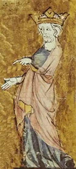 Heinrich II, Darstellung aus dem 13. Jahrhundert, British Library, MS Royal 14 C VII f.9