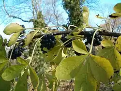 Die reifen Früchte sind meist blau bis schwarz.