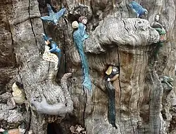 Die Elfeneiche ist ein 900 Jahre alter Baumstumpf in Kensington Gardens in London, der so geschnitzt und bemalt wurde, dass es aussieht, als ob Elfen, Gnome und kleine Tiere in seiner Rinde leben.