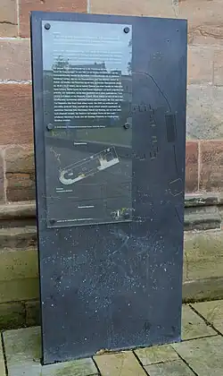 2009 konnten im Bereich der Nordkonche größere Abschnitte des mittelalterlichen Baus freigelegt werden, der durch eine Abweichung von der Ost-West-Ausrichtung um 20,5° auffällt. Die darüber erbaute Elisabethkirche weist lediglich eine Abweichung um 7° auf. Die Maße des entdeckten Steingebäudes betragen 28,60 × 10,50 Meter, direkt östlich schließt eine Kapelle mit halbrunder Apsis an. Im Westen konnte der 10,50 × 10,50 Meter große Umriss eines quadratischen Turmes freigelegt werden.[17] Bei der Neugestaltung des umgebenden Areals wurden zwei verschiedene Bodenbeläge gewählt und eine Informationstafel angebracht, um auf die Grabungsergebnisse hinzuweisen.