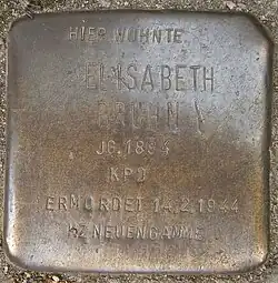 - Einen Stolperstein für Elisabeth Bruhn hat Gunter Demnig in der Bogenstraße 23 in Eimsbüttel verlegt, einen weiteren in der Schellingstraße 16 in Eilbek.
