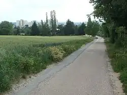 - Nach dem Wickerbach ist sie bald wieder Feldweg südlich von Delkenheim und nördlich von Massenheim, um dann die Autobahn A 3 etwas südlich des Wiesbadener Kreuzes zu unterqueren. 50° 3′ 3,4″ N, 8° 23′ 31,2″ O