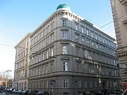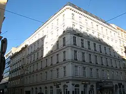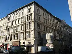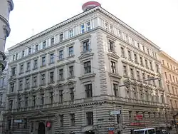 Das 1912 von Hans Prutscher errichtete secessionistische Gebäude zwischen Friedrichstraße und Elisabethstraße besteht aus zwei Trakten mit Innenhöfen. Die durch polygonale Erker gegliederte Fassade zeigt nur mehr an der Rückfront zur Elisabethstraße den originalen Attikagiebel, der an der Friedrichstraße durch einen Dachausbau verlorenging.