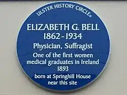 8. a b Elizabeth Gould Bell: Feminist trailblazer whose life was sadly blighted by family tragedies. News Letter, 4. September 2018, abgerufen am 24. März 2025.