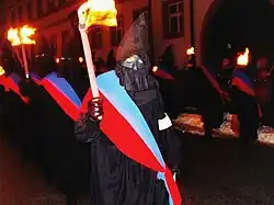 Der Auftritt von Der Pennäler Schnitzelbank (auch Schwarze Schar) am Fastnachtssonntag ist die älteste Fastnachtstradition der Stadt. In schwarze Dominos gekleidet, ziehen die dunklen Gesellen mit Schellenbaum und Fackeln seit über 150 Jahren durch die Innenstadt und die Lokale von Ellwangen und prangern dabei in kunstvollen Versen die Vergehen der lokalen Prominenz an. Den besonderen Reiz machen dabei die absolute Geheimhaltung der Mitglieder der Schwarzen Schar und auch die gedruckten Verslisten aus, die in einigen Ellwanger Geschäften verkauft werden und in denen sich die Schwarze Schar bisweilen auch gern selbst aufs Korn nimmt.[56]