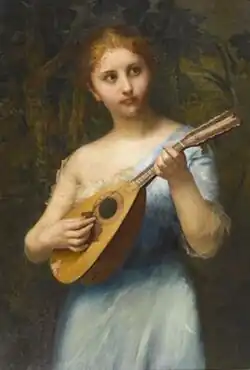- Vor dem Ausgang (Dame in Biedermeierkostüm vor dem Spiegel), 1906, Leinwand, 81 × 56 cm, Kunstmuseum St. Gallen[3]