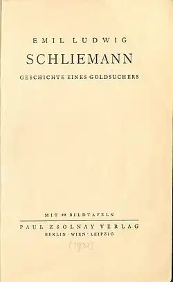- Schliemann. Geschichte eines Goldsuchers. 1932, verändert 1952 als Schliemann. Die Geschichte der Entdeckung des alten Troja.