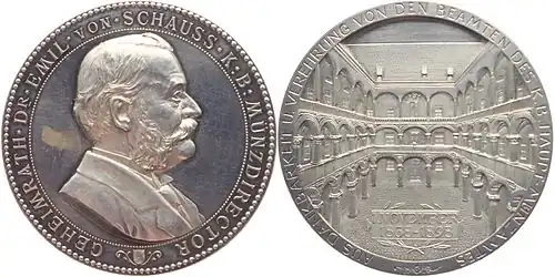 Zum Dr. phil. promoviert, wurde Schauß am 1. November 1858 beim Königlich Bayerischen Hauptmünzamt als Scheider angestellt. 1867 wurde für ihn die Stelle eines Zweiten Wardeins in München geschaffen. 1871 avancierte er zum Münzmeister, 1872 zusätzlich zum Schatzmeister des königlichen Hausschatzes der Wittelsbacher. 1879 wurde er zum Obermünzmeister befördert und führte ab 1883 den Titel eines Königlich Bayerischen Münzdirektors. Seine luxuriöse Dienstwohnung in der Alten Münze hatte einen Tanzsaal.