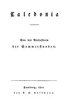 Caledonia ist Johann Gottlieb Herder, der Burns’ Werke und den Ossian sehr schätzte, gewidmet. Als Vertrauter der Autorin las er eine Erstfassung des Werkes noch vor der Veröffentlichung. Caledonia erschien schließlich mit der Angabe „Von der Autorin der Sommerstunden“ ohne zusätzliche Autornennung – eine für die damalige Zeit übliche Art der Veröffentlichung von Autorinnen. Noch 1995 wurde das Werk als eine der wichtigsten Beschreibungen Schottlands in deutscher Sprache bezeichnet[11], auch wenn es schon im 19. Jahrhundert in der Folge der Schriften Walter Scotts durch andere Reiseerzählungen in Vergessenheit geriet.