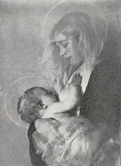 Bedeutend ist insoweit unter anderem das das Motiv der Christus stillenden Maria aufgreifende Bild Alma Mater, ein Selbstbildnis im Stile der Alten Meister mit ihrem jüngsten Sohn Cecil (geboren 1901). Dieses wurde auf der Birminghamer Ausstellung von 1902 erstmals der Öffentlichkeit vorgestellt. Die Selbstdarstellung als Gottesmutter mit Heiligenschein war jedoch nicht unumstritten, sie wurde vom zeitgenössischen Kritiker Anthony Guest als „ziemlich gewagt“ hinterfragt.