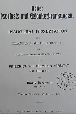 Sie war das jüngste Kind einer kinderreichen jüdischen Familie. Nach Besuch der Volksschule und der Gymnasialkurse für Frauen studierte sie Medizin in München und Berlin. Nach Erhalt des Physikums 1909 in München legte sie 1912 in der Reichshauptstadt das Staatsexamen ab und promovierte Über Psoriasis und Gelenkerkrankung. Im gleichen Jahr heiratete Emmy Grunwald einen Cousin, den (später international bekannten) Chemiker Max Bergmann. Aus der Ehe, die Mitte der 1920er Jahre geschieden wurde, gingen zwei Kinder hervor. 1914 übernahm sie in Berlin für ein Jahr eine Assistentenstelle als Kinderärztin im Kaiserin-Auguste-Victoria-Krankenhaus, gefolgt von Anstellungen an der Säuglingsfürsorge III und schließlich als Schulärztin. Zudem war sie Dozentin für Soziale Hygiene an der Sozialen Frauenschule. September 1922 übersiedelte die Familie nach Freiburg im Breisgau. Dort wandte sich die Kinderärztin immer mehr der Montessoripädagogik zu und eröffnete ein Montessori-Kinderhaus in der Rheinstrasse mit ca. 20 überwiegend nicht schulpflichtigen Kindern, darunter auch ihr Sohn Peter Bergmann. Hinsichtlich der Montessori-Pädagogik besuchte sie Kurse in England, Italien und der Schweiz.
