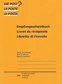 - Empfangsscheinbuch im Sortiment der Schweizerischen Post