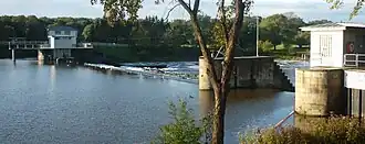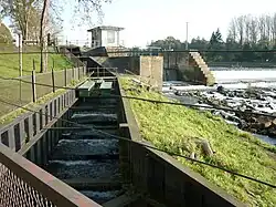 Später wurde ein weiteres Stück des Überfallwehres auf der Südseite zu einem Klappenwehr umgebaut.