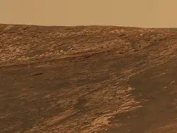 Burns Cliff, benannt nach einem verstorbenen Mineralogen Roger Burns des MIT, wurde sehr eingehend durch Opportunity studiert. Die hohe Rutschgefahr durch den Sand verhinderte den Einsatz des Roboterarms. Allerdings wurden hochauflösende Fotos mit der Pancam geschossen. Diese zeigen Sedimentschichten, die durch frühere Vorkommen von Flüssigkeit entstanden sein könnten.