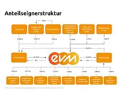 Die evm ist ein zu 100 Prozent kommunales Unternehmen, deren Anteilseigner z. B. die Stadtwerke Koblenz GmbH und Kommunen wie der Westerwaldkreis und die Stadt Koblenz sowie dem Stadtwerkeverbund Thüga AG sind.