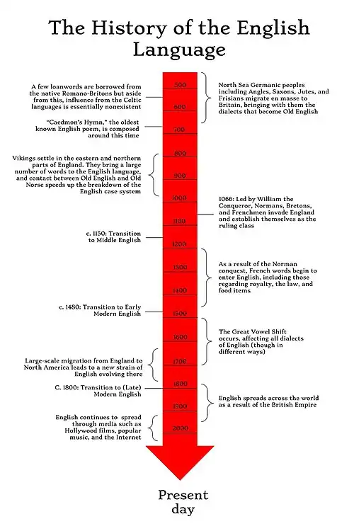 Die Sprachstufen des Englischen lassen sich wie folgt bestimmen:[14]