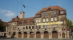 - Pegnitzstraße 41 – Viergeschossiges historisierendes Mietshaus mit Zwerchhaus an der abgerundeten Ecke und Mansarddach, Putzbau mit Sandsteinerdgeschoss, 1913/14 von Ebert und Gross; Gruppe mit Schießplatz 24.