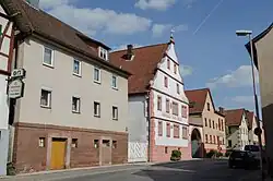 Die nach Nordwesten auf den Kirchenhügel zulaufende Hauptstraße des Marktfleckens ist von Bauernhöfen gesäumt. Deren Wohnbauten besitzen teils als Traufseithäuser gestreckte Fronten mit Toreinfahrten, teils sind sie als Giebelhäuser mit der Hofmauer verbunden, in dem sich jeweils das Hoftor befindet. Die Häuser stammen meist dem 18./19. Jahrhundert und haben verputzte Fachwerkobergeschosse.