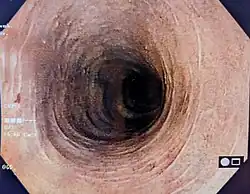 Die Behandlung von Komplikationen der eosinophilen Ösophagitis ist das Gebiet der endoskopischen Therapie. Aufgrund der dauerhaften Entzündung kommt es zu Strikturen und Stenosen, die entweder mittels Bougies oder mittels Ballon-Dilatation aufgedehnt werden können.[29] Die endoskopische Therapie ersetzt jedoch nicht die dauerhafte Fortführung der Behandlung der zugrundeliegenden Entzündung mittels Medikamenten oder Diät.