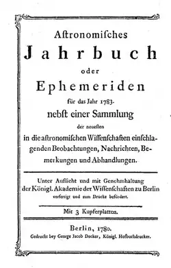 Für 1783 veröffentlichte Ephemeriden (Berlin, 1780)