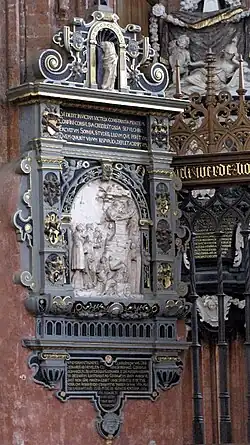 | Bertold Wilms | 1568 | Laval, Jost de | Holzepitaph, verloren 1942. Herausgestellt bei Walter Paatz, S. 35. | |