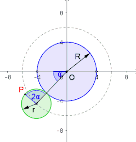 Dabei wird vorausgesetzt, dass der feste Kreis den Mittelpunkt hat. Die Startposition des erzeugenden Punktes ist . Als Parameter wird der Winkel verwendet, den die Verbindungsstrecke zwischen dem Ursprung und dem Mittelpunkt des bewegten Kreises mit der x-Achse einschließt.