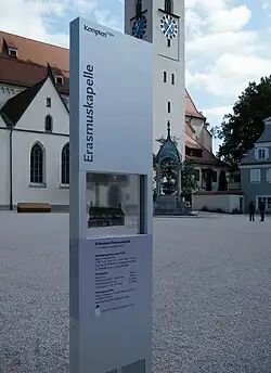 - ↑ Birgit Kata: Der Schauraum Erasmuskapelle in Kempten (Allgäu). 1. Auflage. Kunstverlag Josef Fink, Lindenberg im Allgäu 2011, ISBN 978-3-89870-706-0, S. 31.