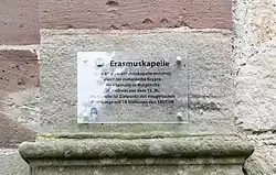 1676 soll sich an der verfallenen Krypta die Wunderheilung eines Jungen auf Fürsprache des hl. Erasmus zugetragen haben. Diese Nachricht verbreitete sich rasch und bereits im folgenden Jahr sollen 52 Wunderheilungen dort geschehen sein.[10] Die ortsansässigen Jesuiten förderten daraufhin[11] mit Unterstützung des Fürstbischofs Ferdinand von Fürstenberg[10] die Einrichtung einer jährlichen Prozession und einer sich daraus entwickelnden Wallfahrt zur Kapelle am Dreifaltigkeitssonntag, der dem Gedenktag des Heiligen am 2. Juni meist sehr nahe liegt.