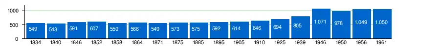 - ↑ Statistisches Bundesamt (Hrsg.): Historisches Gemeindeverzeichnis für die Bundesrepublik Deutschland. Namens-, Grenz- und Schlüsselnummernänderungen bei Gemeinden, Kreisen und Regierungsbezirken vom 27. 5. 1970 bis 31. 12. 1982. W. Kohlhammer GmbH, Stuttgart und Mainz 1983, ISBN 3-17-003263-1, S. 367.