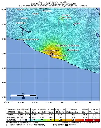 Das Erdbeben im Südwesten von Acapulco ereignete sich am 7. September 2021 um 20:47 Uhr Ortszeit in Mexiko im Bundesstaat Guerrero, rund elf Kilometer südwestlich des Urlaubsortes Acapulco.[1][2]