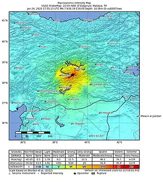 - ↑ a b c d e f 24 Ocak 2020 Sivrice (Elazığ) Mw 6.8 Depremi Raporu. (PDF; 29,5 MB) In: afad.gov.tr. Februar 2020, abgerufen am 5. März 2020 (türkisch).