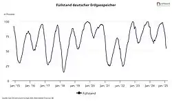 - ↑ Füllstand deutscher Erdgasspeicher. Statistisches Bundesamt (Destatis), 9. Februar 2025, abgerufen am 9. Februar 2025.
