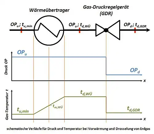 Schema der Erdgas-Vorwärmung mit anschließender Drosselung