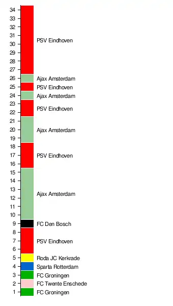 | 2. | Ajax Amsterdam | 3:0 | 1:3 | 2:0 | 4:0 | 3:0 | 4:0 | 3:0 | 6:2 | 3:1 | 5:2 | 6:0 | 0:0 | 2:3 | 2:0 | 3:2 | 4:0 | 3:0 | |