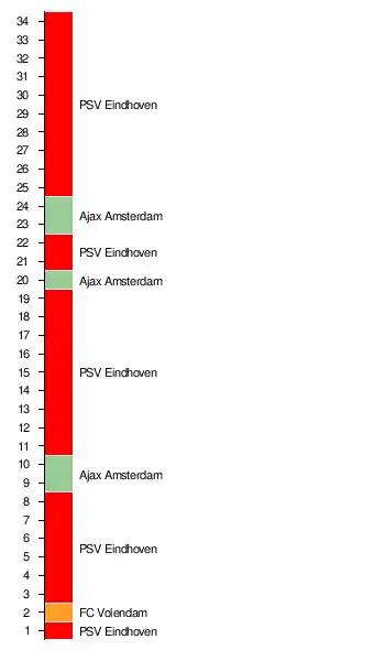 | 2. | Ajax Amsterdam | 3:1 | 1:1 | 1:1 | 3:0 | 1:1 | 0:0 | 2:0 | 3:1 | 4:1 | 3:1 | 2:0 | 1:0 | 5:0 | 1:0 | 2:0 | 4:0 | 7:0 | |