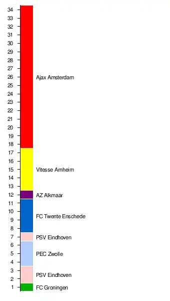 | 1. | Ajax Amsterdam | 1:0 | 2:1 | 0:1 | 3:0 | 3:0 | 2:1 | 3:0 | 3:2 | 4:0 | 2:1 | 3:0 | 4:0 | 0:0 | 2:2 | 3:0 | 1:1 | 6:0 | |