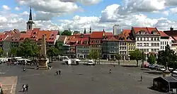 Im Herbst 1989 leiteten auch in Erfurt immer größere Demonstrationen die Wende und friedliche Revolution in der DDR ein. 1991 stimmten 49 von 88 Abgeordneten des Landtags für Erfurt als Landeshauptstadt von Thüringen.[35]