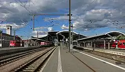 Zum Fahrplanwechsel im Dezember 2005 wurde die Nordseite des Hauptbahnhofs offiziell in Betrieb genommen.[17] Er bestand aus einer „halben“ Glashalle im Obergeschoss, die den neu eröffneten nördlichen Inselbahnsteig mit den Gleisen 1 und 2 und teilweise den Mittelbahnsteig überspannt, sowie der Geschäftspassage im Erdgeschoss und der Tiefgarage.
