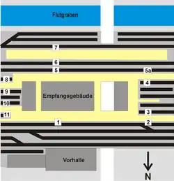 | Gleis | Länge in m[37] | Höhe in cm[37] | Aktuelle Nutzung (hauptsächlich) (Stand: Januar 2022)[38] |
