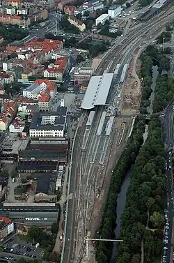 Der Erfurter Hauptbahnhof ist der zentrale Personenbahnhof der thüringischen Landeshauptstadt Erfurt. Er ist Schnittpunkt der Schnellfahrstrecke Nürnberg–Leipzig sowie der Bahnstrecke Halle–Bebra und damit ein wichtiger Knotenpunkt im Schienenpersonenfernverkehr in Deutschland. Täglich nutzen etwa 46.000 Reisende den Bahnhof.[1]