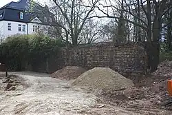 Das erhaltene Stück der inneren Mauer am Brühler Garten
