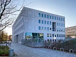 2007 wurde der südliche, dreiseitig umschlossene Vorhof des Doppel-H-Gebäudes bebaut.[8] Von 2016 bis 2018 wurden das Doppel-H-Gebäude und die 1-Feld Turnhalle saniert.[8] Dabei wurde das Hauptgebäude der Erich-Kästner-Schule (Entwurf Gorges & Rosenbusch[10]) abgerissen.[8] Der Ersatzneubau für das Hauptgebäude wurde nach Plänen von SEHW Architekten bis 2020 errichtet.[11] Der fünfgeschossige Neubau nimmt auf etwa 5300 m² Grundfläche für Fachklassenräume auf, dazu eine Mensa mit Küche, Verwaltung, Aula und Foyer.