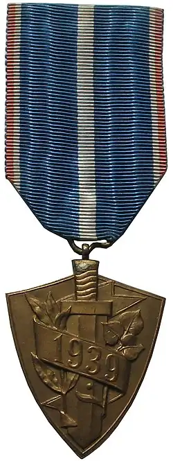 Das Avers der schildförmigen bronzenen Medaille zeigt mittig ein erhaben geprägtes Schwert, das von einem Bande mit der Aufschrift 1939 umwickelt ist. Ebenfalls vom Bande umschlungen ist ein vom Schwert links liegendes Lorbeerblatt und rechts liegendes Lindenblatt. Das Revers der Medaille gab es in zwei Ausführungen, die sich jedoch nur anhand der dort befindlichen Inschrift unterscheiden. Zum einen gab es die Medaille zur Erinnerung an: