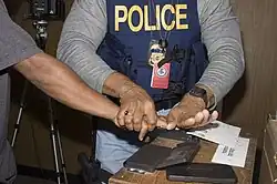 Nach deutschem Polizeirecht der Länder und des Bundes können ebenfalls erkennungsdienstliche Behandlungen zur Feststellung der Identität im Rahmen des Polizeirechtes (z. B. § 18 HSOG – Identitätsfeststellung und Prüfung von Berechtigungsscheinen) oder zur vorbeugenden Bekämpfung von Straftaten durchgeführt werden.[15][16] Im Gegensatz zum Strafprozessrecht (§ 81b StPO) können nach Polizeirecht auch strafunmündige Personen (Kinder etc.) zur vorbeugenden Verbrechensbekämpfung erkennungsdienstlich behandelt werden.