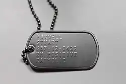 Die Erkennungsmarke der Streitkräfte der Vereinigten Staaten unterscheidet sich im Aufbau etwas von den in Europa gebräuchlichen Marken, erfüllt aber den gleichen Zweck. Sie dient zur eindeutigen Identifizierung von im Einsatz gefallenen Soldaten. Im Gegensatz zu beispielsweise den deutschen Erkennungsmarken (umgangssprachlich auch als „Hundemarke“ bezeichnet), besteht diese Marke aus zwei Teilen.
