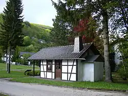 - Die Kapelle an der Hauptstraße ist in typischer Bauweise der Region des 19. Jahrhunderts errichtet (Grauwacke-Bau mit Schieferdach).