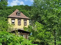 - ↑ Volker Helas (Bearb.): Stadt Radebeul. Hrsg.: Landesamt für Denkmalpflege Sachsen, Große Kreisstadt Radebeul (= Denkmaltopographie Bundesrepublik Deutschland. Denkmale in Sachsen). Sax-Verlag, Beucha 2007, ISBN 978-3-86729-004-3, S. 69 f. sowie beiliegende Karte.
